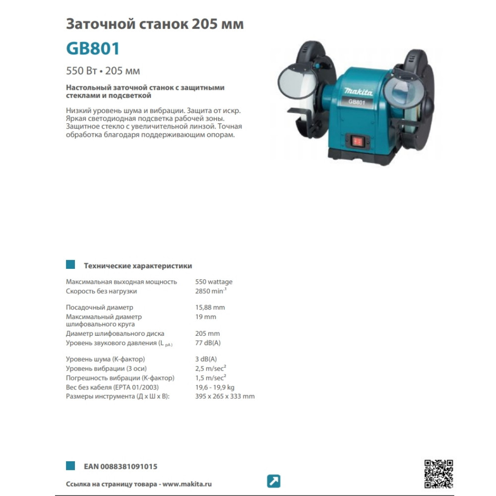 Преимущества станка точильного Makita GB602 205 мм: