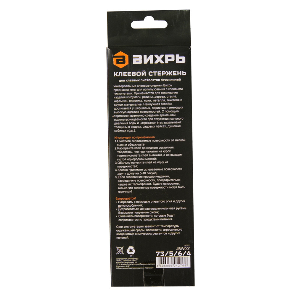 Стержень клеевой Вихрь 73/5/6/4 11х200 мм 12 шт