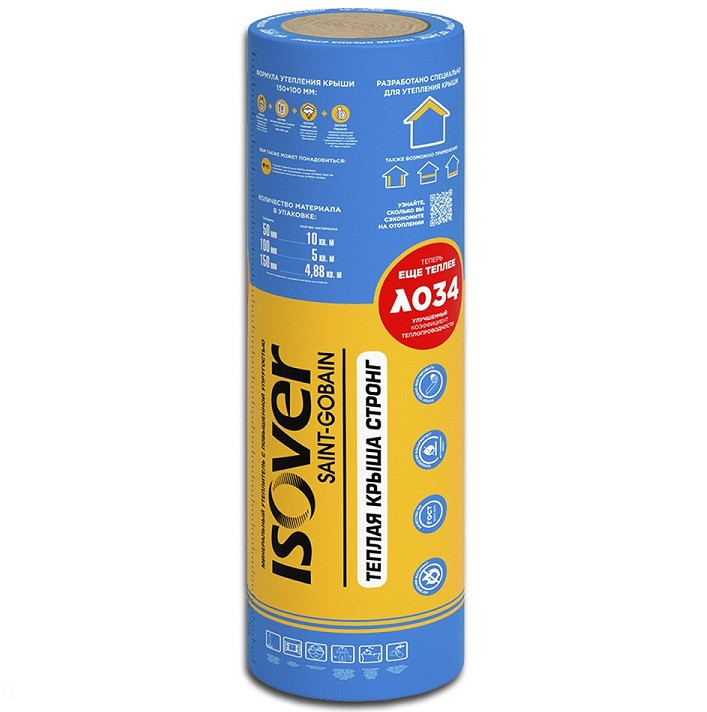 Утеплитель Изовер Теплая Крыша Стронг 50 - самая теплая и упругая минеральная вата для утепления и звукоизоляции крыши и мансарды даже с самым нестандартным шагом стропил без крепежа: например, 400мм, 570мм, 670мм и т.д. до 800 мм.