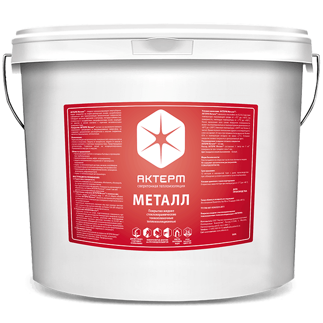 Актерм Металл – тепло-энергосберегающее покрытие на водной дисперсии, разработан специально для термоизоляции металлических поверхностей. Наносится как краска – действует как тепловой барьер! Покрытие Актерм Металл не содержит органических растворителей, пожаробезопасный, нетоксичный, атмосферостойкий благодаря чему пригодно для применения как снаружи так и внутри жилых и производственных помещений.