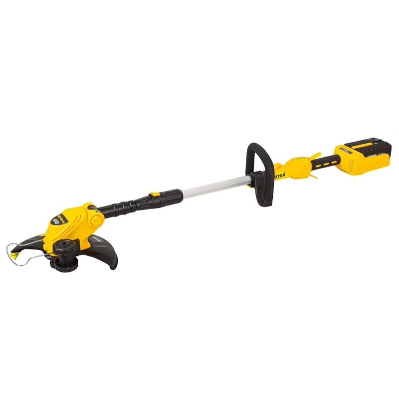 Электрический двигатель создает частоту вращения 8 000 оборотов в минуту. Скашивание производится нейлоновой леской толщиной 1,6 мм. Благодаря установленной литий-ионной батарее инструмент отличается экологичностью и низким уровнем шума. Аккумулятор емкостью 3 Ач и напряжением 40 В полностью заряжается за 60 минут. Аккумуляторный триммер имеет прямую штангу с удобной D-образной складной ручкой. Небольшой вес устройства и наличие защитной скобы облегчают эксплуатацию и делают процесс скашивания безопасным.