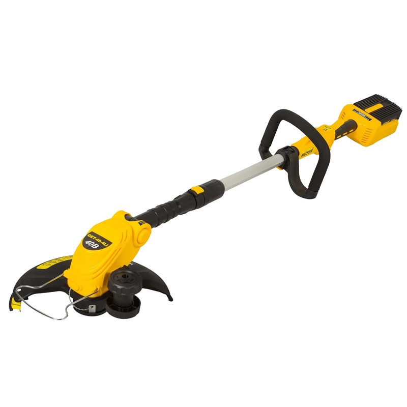 Триммер аккумуляторный Huter GET-40-4Li электрический аккумуляторный инструмент для скашивания травы при помощи нейлоновой лески. Небольшой вес инструмента и дополнительная ручка, расположенная на штанге, делают работу с ним удобной и простой. Литиевый аккумулятор триммера выдает напряжение 40 В, имеет емкость 4 Ач, и заставляет мотор вращаться со скоростью 8000 об.*мин. Время, необходимое для полной зарядки аккумулятора – 60 мин. Разборная конструкция штанги делает аккумуляторный триммер компактным для перевозки и хранения. Катушка заправляется леской толщиной 1,6 мм и оснащена обрезчиком, ограничивающим вылет лески. Полоса скашивания - 31 см за один проход. На рукоятке удобно расположены кнопка включения двигателя и кнопка фиксации во включенном состоянии.
