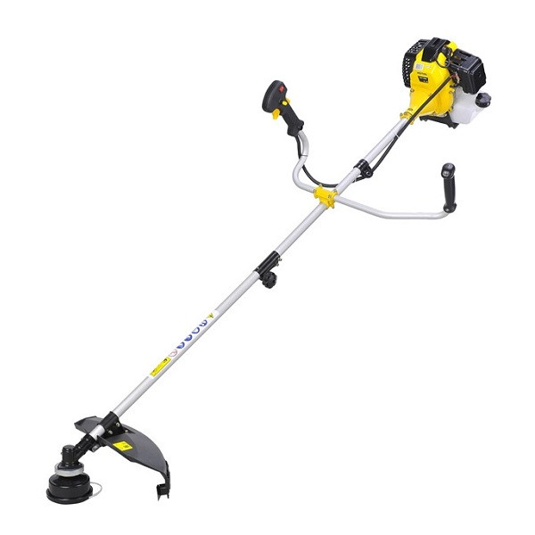 Устройство является удобным в управлении. Триммер оснащен двухтактным двигателем с воздушным охлаждением, тип зажигания – электронный. Мощность мотора составляет 2500 Вт, обороты двигателя – от 7500 до 9500 об/мин. Емкость топливного бака равняется 700 мл. Ширина скашивания режущим диском составляет 255 мм.
