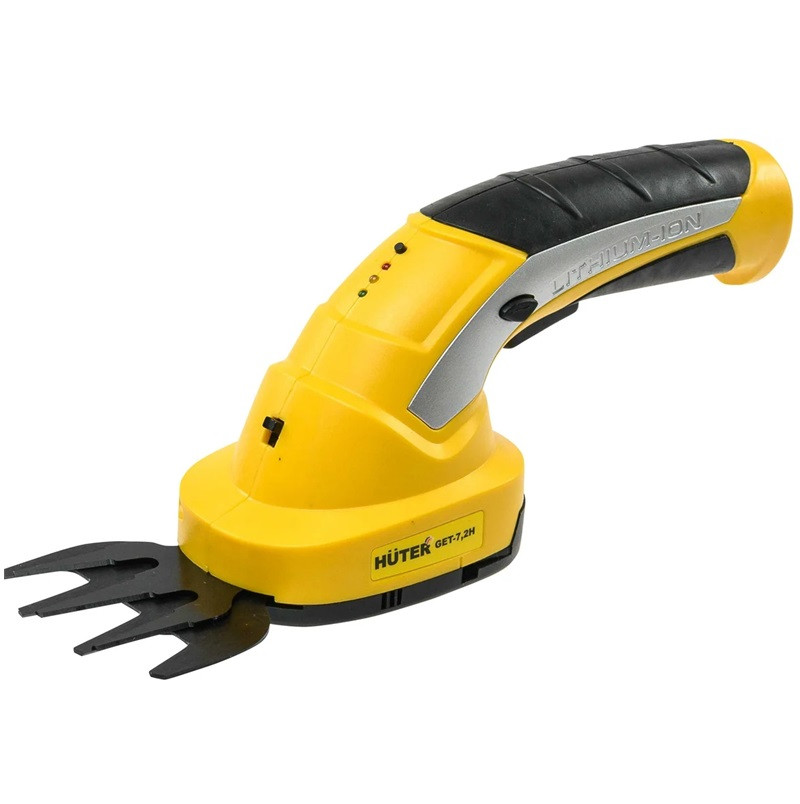 Триммер-кусторез аккумуляторный электрический Huter GET-7,2 - удобная эргономичная форма рукоятки, компактные размеры и небольшой вес в 1 кг позволят не только стричь кусты и равнять газон, но и заниматься декоративным творчеством с растительностью. Инструмент работает от аккумулятора, емкость батареи составляет 1,5 Ач. В комплекте присутствуют две насадки — для подравнивания и для фигурной резки. Кусторез уверенно стрижет ветки диаметром до 8 мм. Насадка для фигурной обрезки двухсторонняя, работает при маятниковом движении руки во время стрижки в обе стороны. Лезвия держат заточку на протяжении всего срока эксплуатации, но старайтесь избегать их контакта с инородными предметами, это может привести к преждевременной поломке.