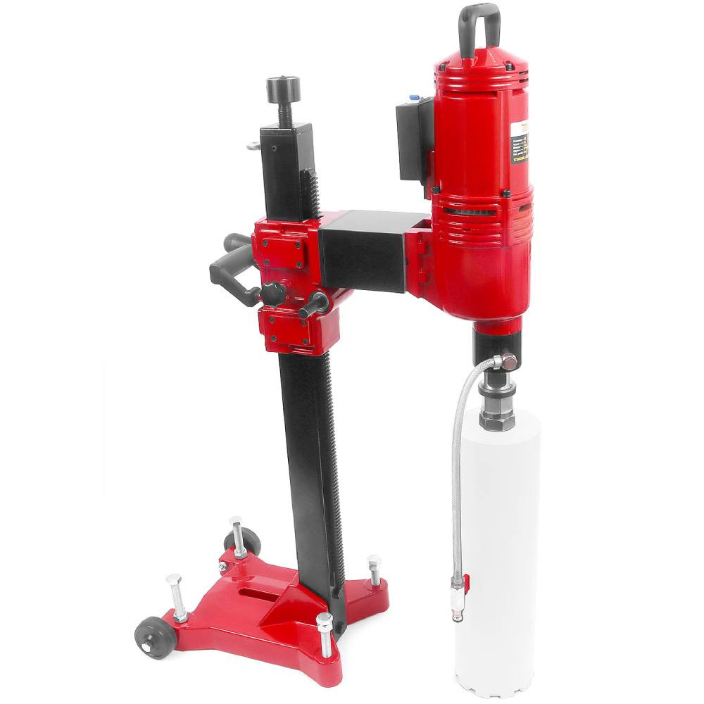 Установка алмазного бурения Messer DM350E-P на стойке без наклона 3,5 Квт 360/750/1000 об/мин - Данный комплект способен эффективно работать с алмазными коронками диаметром от 35 до 500 мм и посадкой 1¼ дюйма. Неоспоримыми достоинствами двигателя являются металлический корпус, защита двигателя от перегрузки и защита оператора от поражения электрическим током.