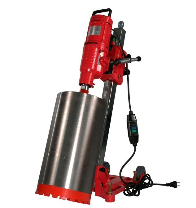 - PRCD переключатель на 3-х метровом кабеле обеспечивает безопасность работы и предохраняет электросистему алмазной сверлильной установки от скачков напряжения в электросети;