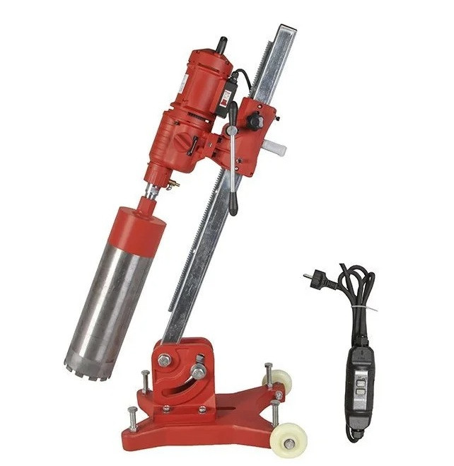 - PRCD переключатель на 3-х метровом кабеле обеспечивает безопасность работы и предохраняет электросистему алмазной сверлильной установки от скачков напряжения в электросети;