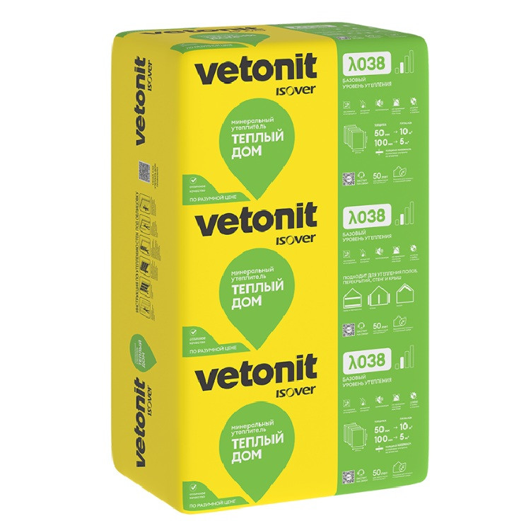 Утеплитель Vetonit Теплый Дом 1170х610х50 мм 14 шт минеральный утеплитель в плитах с базовой теплопроводностью (λ = 0,038) для полов, стен и крыш. Практичное решение для экономии на отоплении: материал обладает всеми необходимыми характеристиками и устойчив в каркасе!
