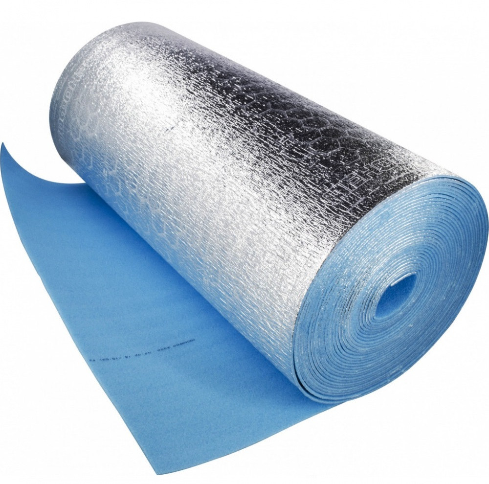Вспененный полиэтилен Пенофол 2000 Тип А 15000x1200x10 мм - материал на основе вспененного полиэтилена, голубого цвета, с закрытой ячеистой структурой, дублированный с одной стороны полированной алюминиевой фольгой с защитой от подделок - универсальной печатью.Используется для внутреннего утепления стен, кровли, лоджий. Применяется для изоляции труб большого диаметра в системах отопления, водоснабжения и емкостей.