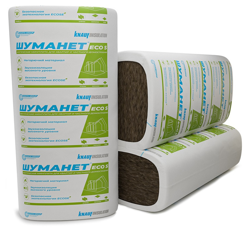 Звукоизоляционная плита Шуманет-Eco S 1200х600х50 мм 10 плит - экологически безопасная звукопоглощающая плита Шуманет-ECO S изготовлена из стеклянного штапельного волокна с использованием технологии ECOSE в качестве связующего. Плиты предназначены для использования в составе звукоизоляционных и звукопоглощающих конструкций в качестве внутреннего звукопоглощающего слоя. За счет своих пожарных и экологических свойств материал идеально подходит для применения в жилищно-гражданском строительстве, а также монолитном, кирпичном, каркасном и каркасно-панельном типах домостроения.